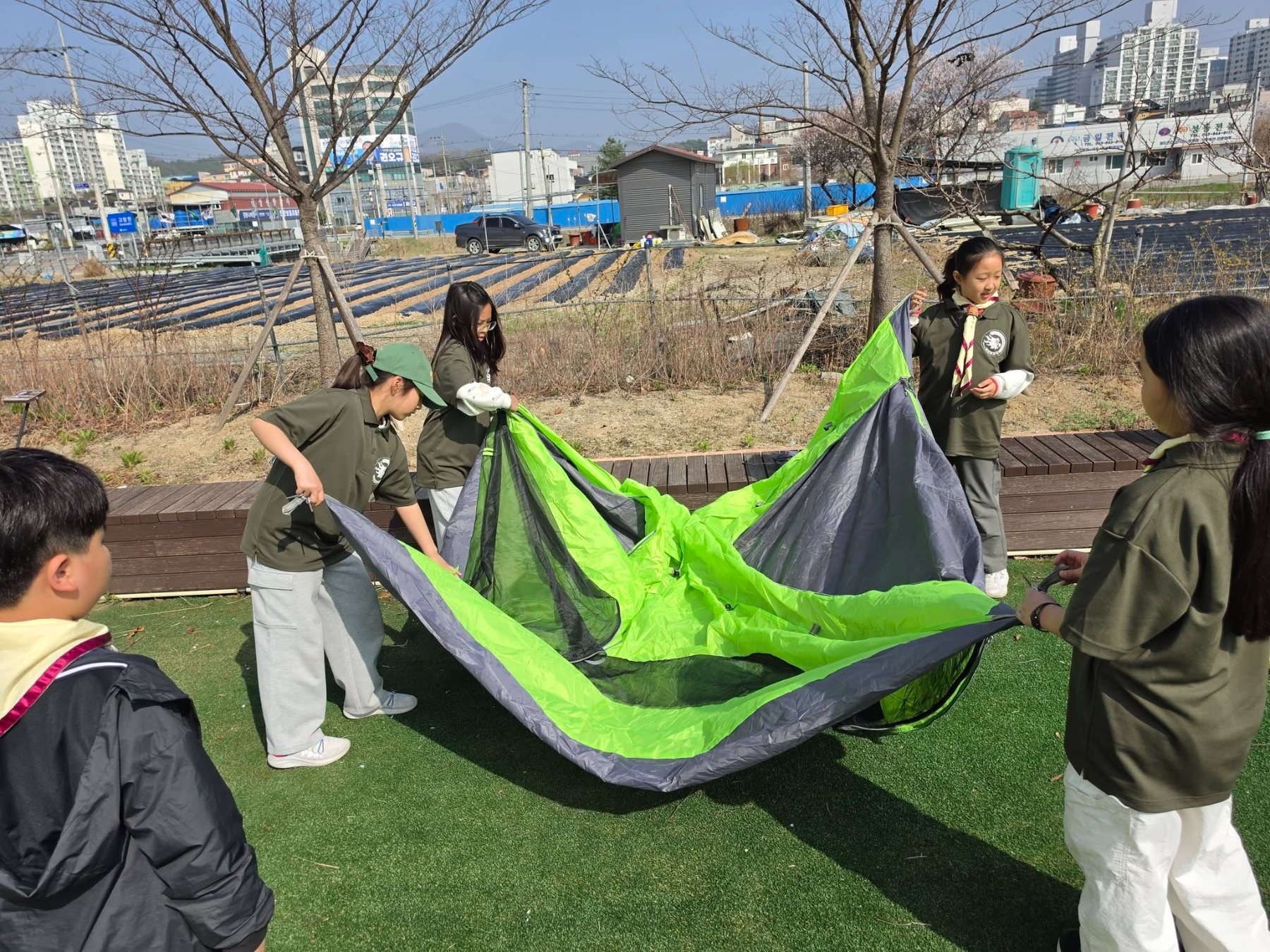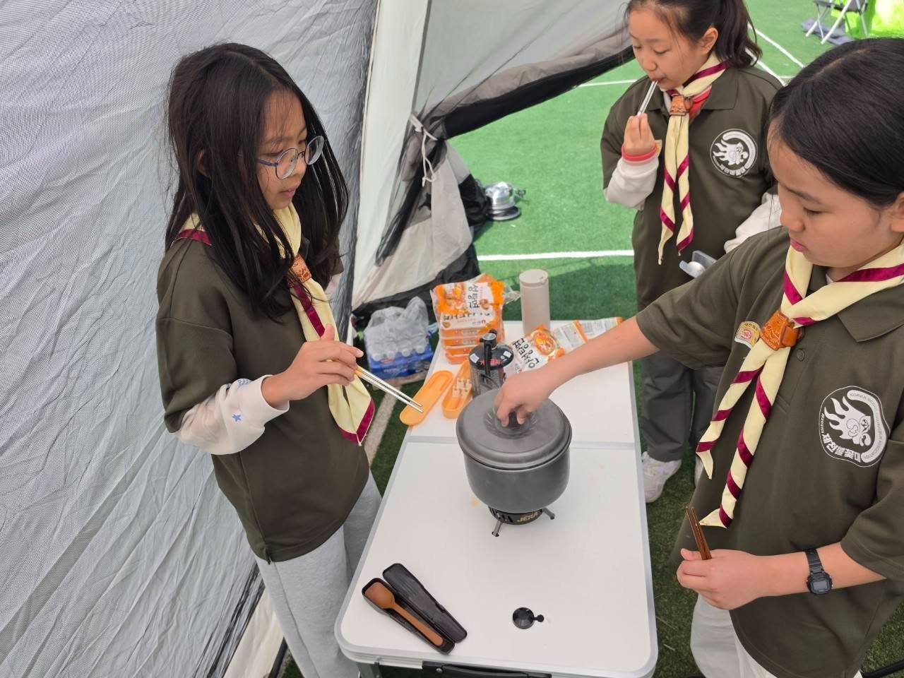 대원들은 텐트 설치 훈련을 통해 야외 활동의 기초를 익혔다. 처음에는 익숙하지 않은 과정이었지만, 반 제도 속에서 서로 역할을 나누고 협력하며 하나의 결과를 만들어가는 경험을 쌓았다. 이는 단순한 기술 습득을 넘어, 공동체 안에서의 협동과 책임을 배우는 과정으로 이어졌다.