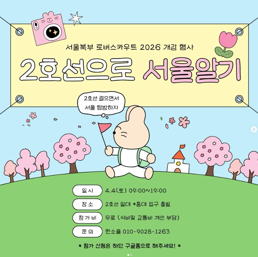 이번 활동은 2025년 4월 4일(토) 오전 9시부터 오후 7시까지 진행되며, 홍대입구역을 출발해 2호선 일대를 순환하는 방식으로 운영된다.